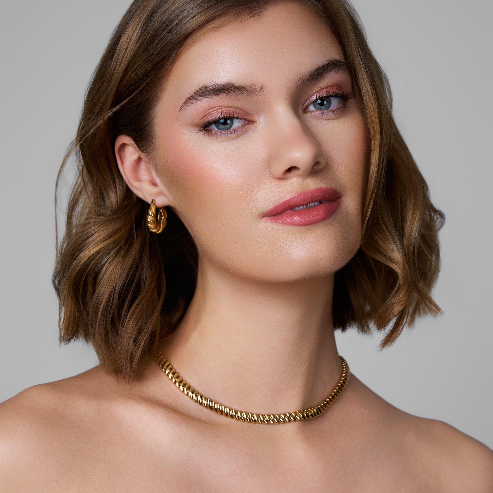These gold-tone hoop earrings feature a beautifully twisted design that adds dimension and texture. With a polished finish, the hoops offer a modern yet timeless look, perfect for elevating both casual and formal outfits. Their sculptural shape brings a sense of movement and sophistication, making them a versatile addition to any jewelry collection.