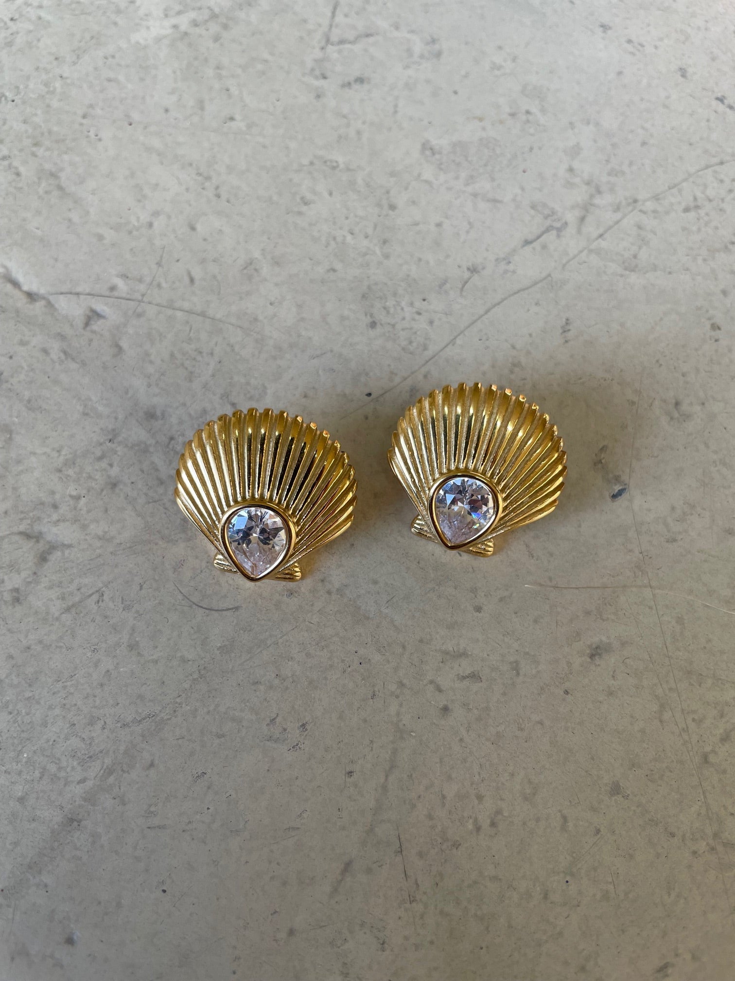 Featuring intricately designed seashells, the Golden Seashell Earrings are embellished with a luminous teardrop-shaped zircon crystal at the center. Perfectly versatile, whether you’re strolling on the beach or attending an elegant soirée. Lightweight yet impactful, they are the ultimate statement earrings with timeless nautical charm.