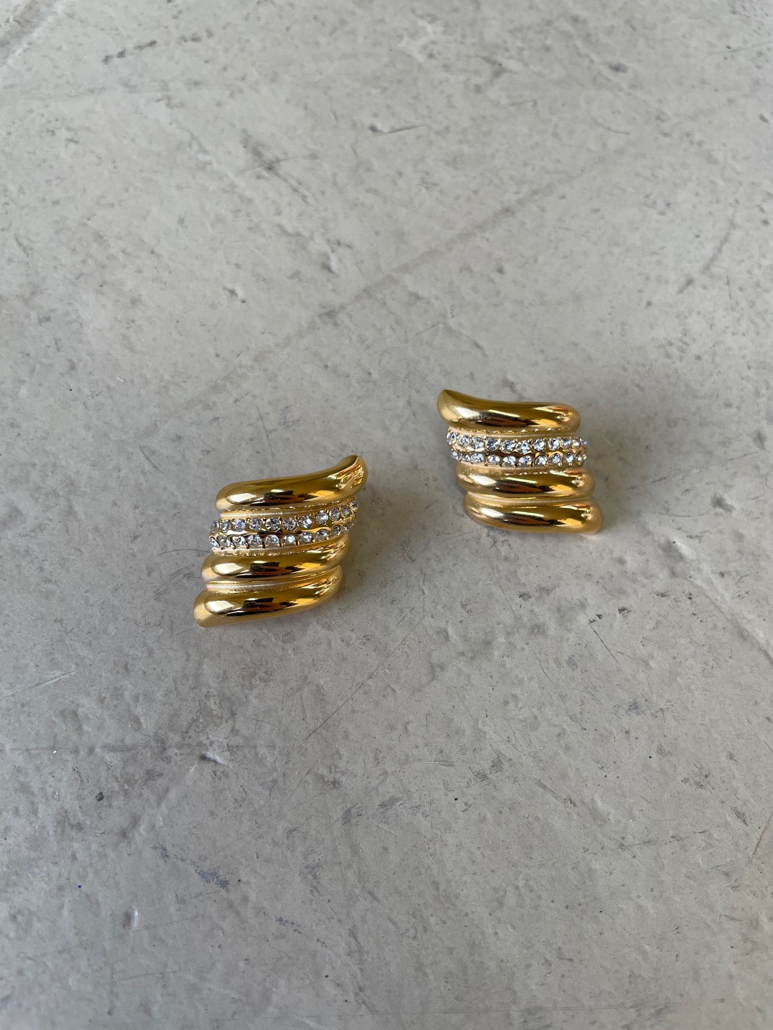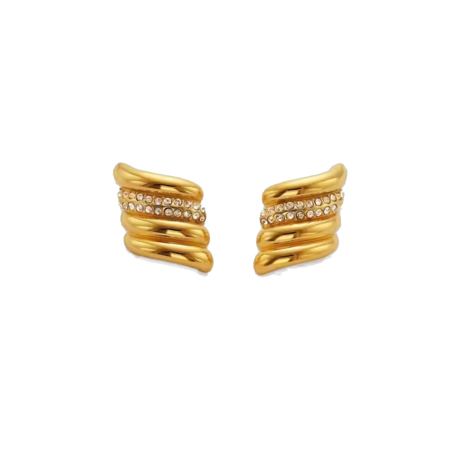 Elevate your jewelry collection with the Ripple Hoop Crystal Earrings. These gold-tone hoops showcase a layered, wavy design that exudes modern elegance. Adorned with rows of delicate crystals, they capture the light beautifully, adding a touch of sparkle to any outfit. Perfect for day-to-night styling, these earrings are lightweight yet bold, making them an essential statement piece for any occasion.